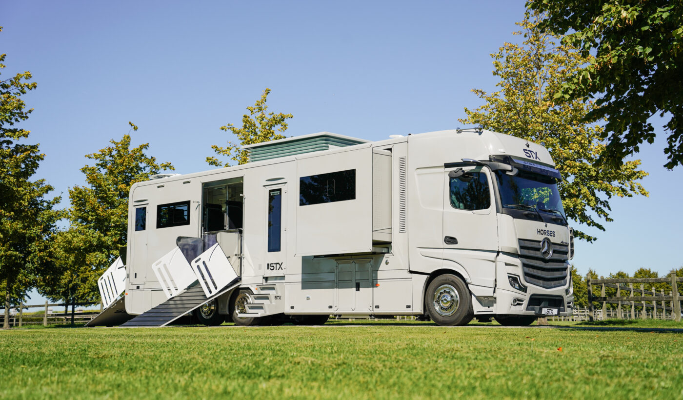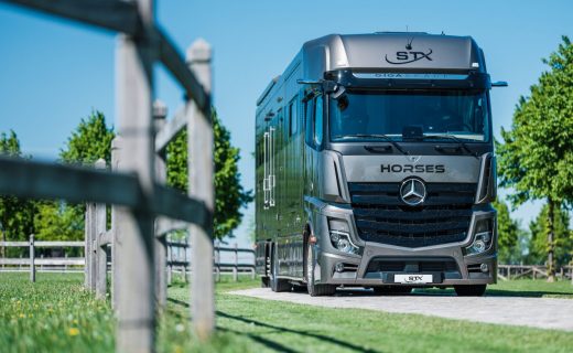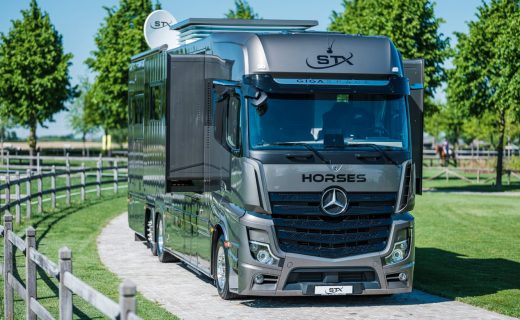 Experience responsiveness, performance and comfort. Expect exceptional capabilities on the road with the STX Mercedes Actros L. With its 510 HP, it offers you the ability to carry 4 to 9 horses with optimum safety, and its luxurious passenger living area adapts to your needs. The STX Horsetrucks' aim: to offer the best possible comfort for you and the horse.